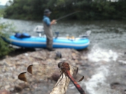 ボートから降りてフライでじっくり。ボートで下りながらルアーのキャストを続ける。