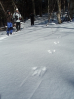 積もりたての新品の雪面にスノーシューの足跡をつけながら。