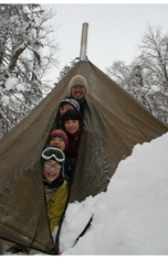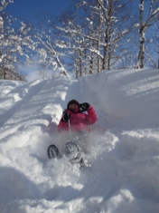 森の中にテントを建てて秘密基地をつくったら、新雪をふかふか散策したり、ソリコースをつくって滑り下りたり!