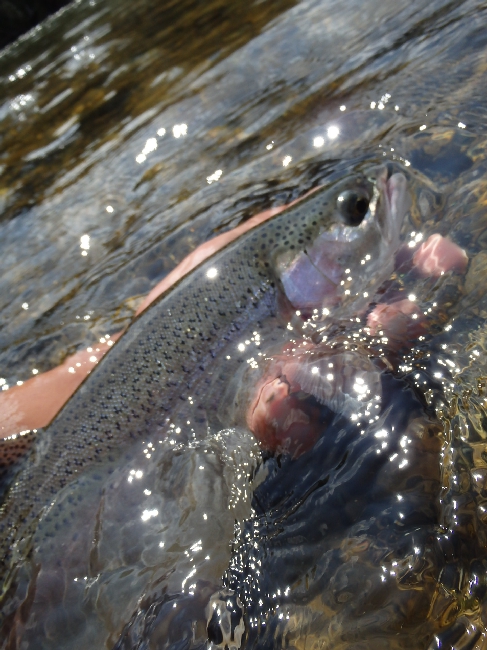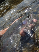 ボートから降りてフライでじっくり。ボートで下りながらルアーのキャストを続ける。
