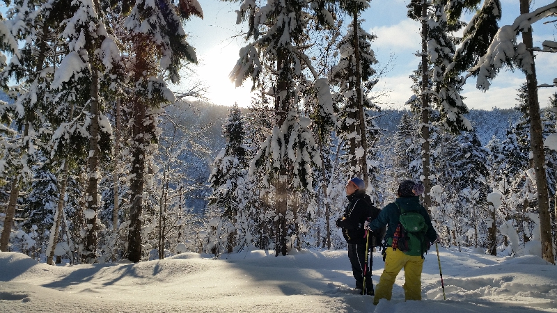 クリスマスツリーの白い森へスノーシューを履いて出発!