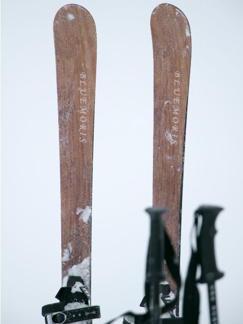 スキーの滑走面にウロコ状の滑り止めがついているので、歩けて、登れて、滑れる、トレッキング用のスキーです。